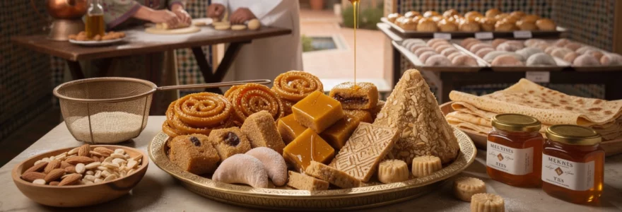 La pâtisserie marocaine s’impose comme l’un des joyaux les plus précieux de la gastronomie méditerranéenne, révélant un art culinaire raffiné où se mélangent harmonieusement les saveurs du miel doré, des amandes parfumées et de l’eau de fleur d’oranger délicate. Cette tradition millénaire, héritée des civilisations berbères et enrichie par les influences andalouses, ottomanes et orientales, constitue aujourd’hui un patrimoine gastronomique d’une richesse exceptionnelle. Chaque région du royaume chérifien a développé ses propres spécialités, créant une mosaïque de saveurs qui raconte l’histoire d’un peuple et de ses échanges culturels. Des chebakia dorées aux cornes de gazelle délicates, en passant par les makroudh parfumés, ces douceurs orientales transcendent les frontières du simple dessert pour devenir de véritables œuvres d’art culinaire.